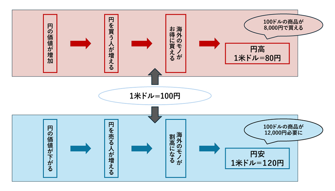 この記事では、円高・円安それぞれの原因や影響などについて、わかりやすく解説します。