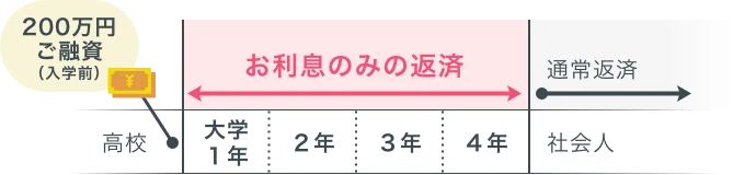 例)大学入学時に、入学金・初年度授業料合計200万円借入。