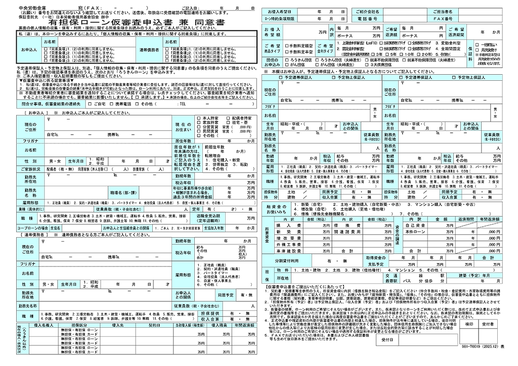 - 仮審査申込書・個人情報に関する同意書は必ず両面印刷でご使用ください。