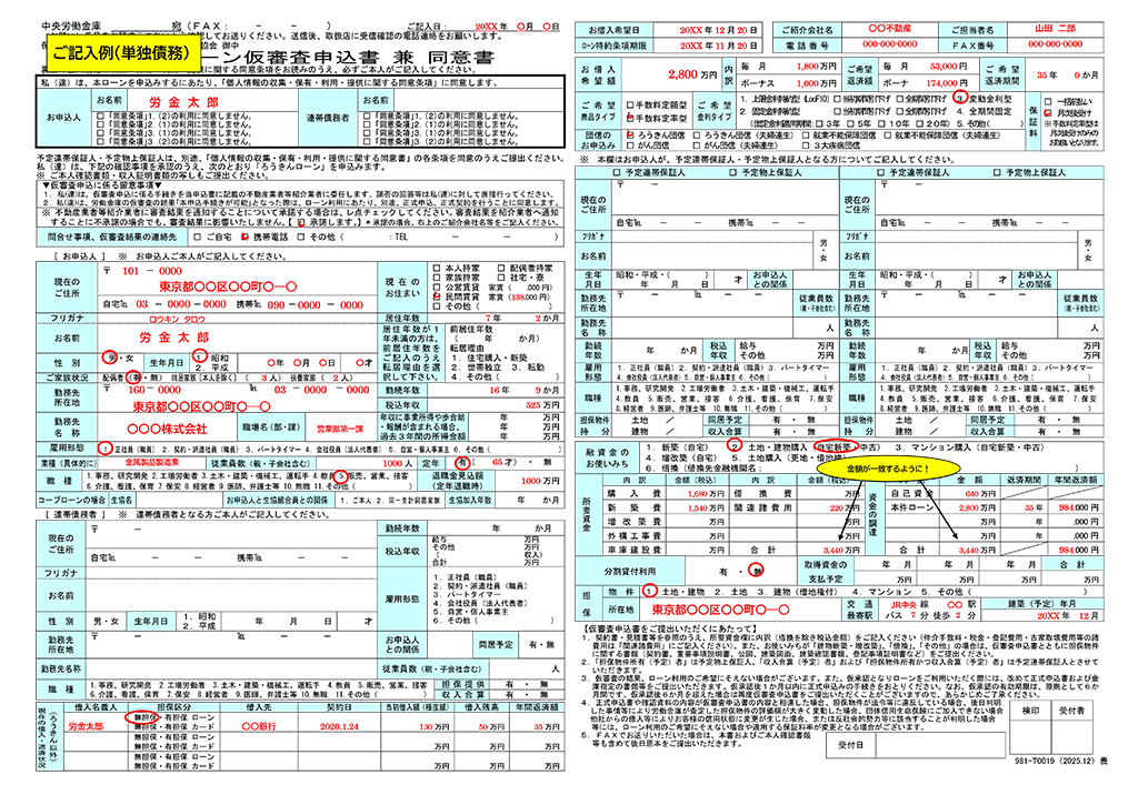 - 必ず全ての欄をお借り入れいただいているご本人様がご記入ください。