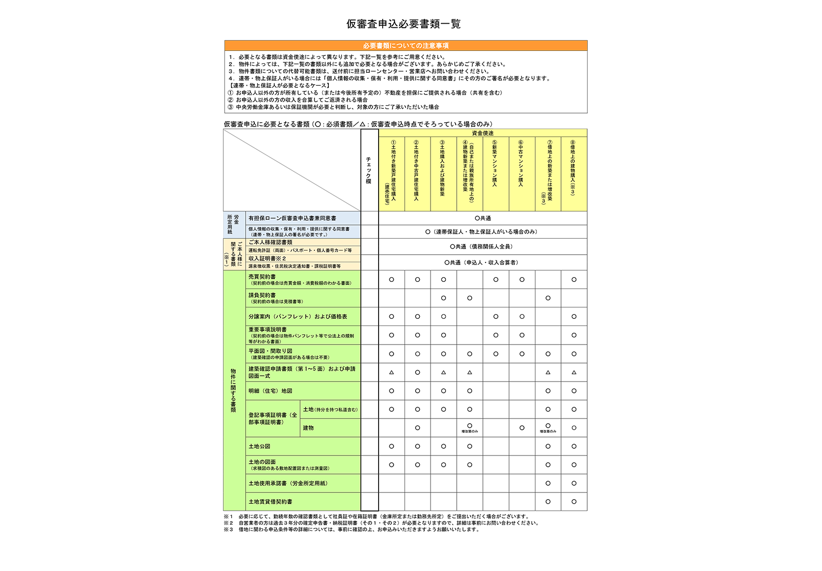 - 代筆、記入・押印漏れ、不足書類等がありますと、仮審査申込をお受けできない場合がございます。